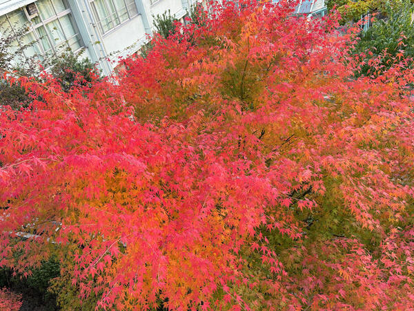 中庭にあるモミジが美しく紅葉しました。