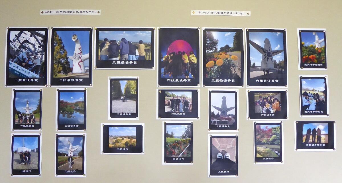 11月に1年生が遠足に行ってきました。その際に撮影した写真のコンテストを行い、表彰結果を1年生に近い教室棟3階のホール前に掲示しています。