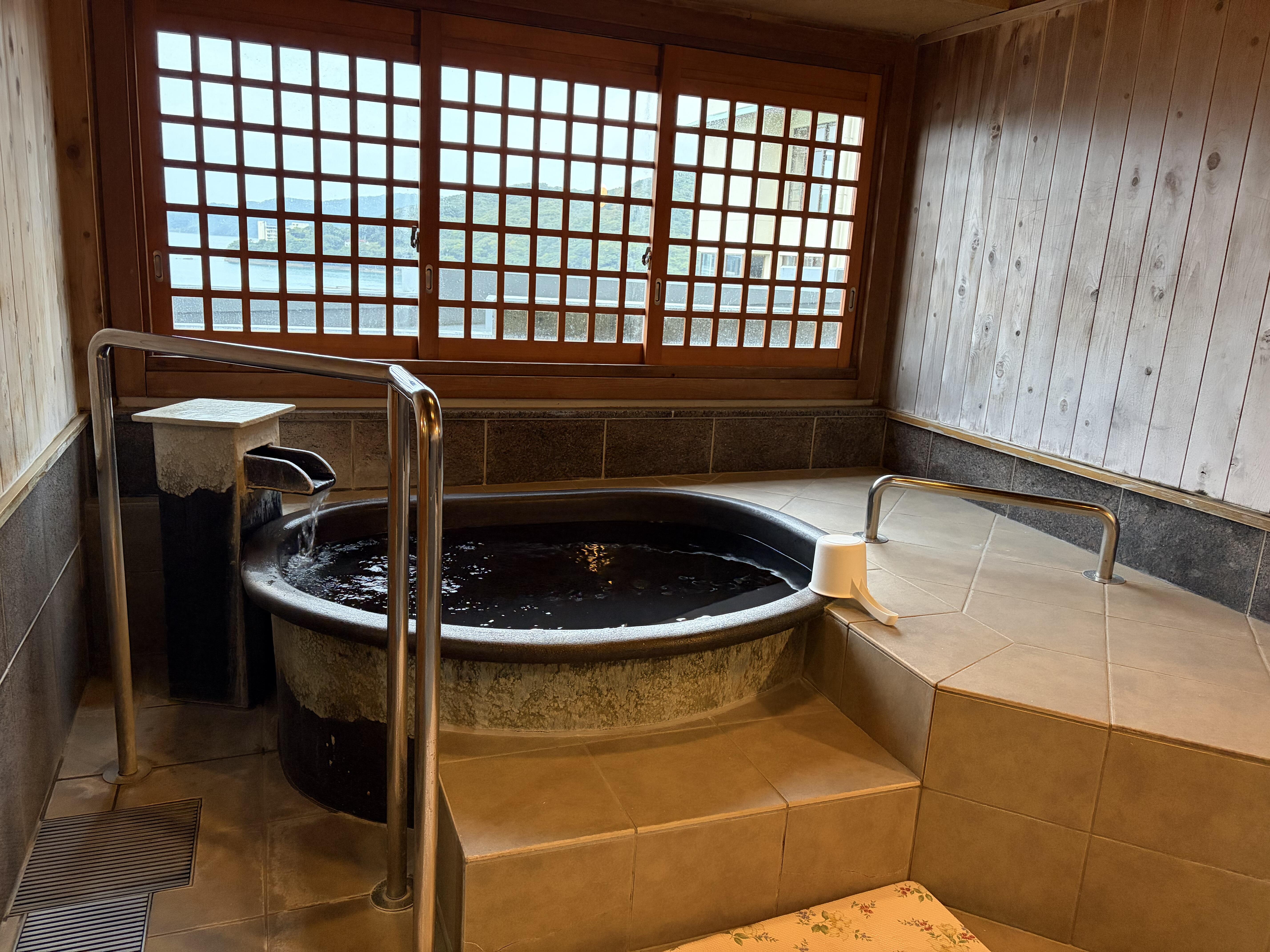とてもおしゃれなお風呂で、泉質は「アルカリ性単純温泉」。美肌効果や疲労回復、健康増進にも良いそうです。