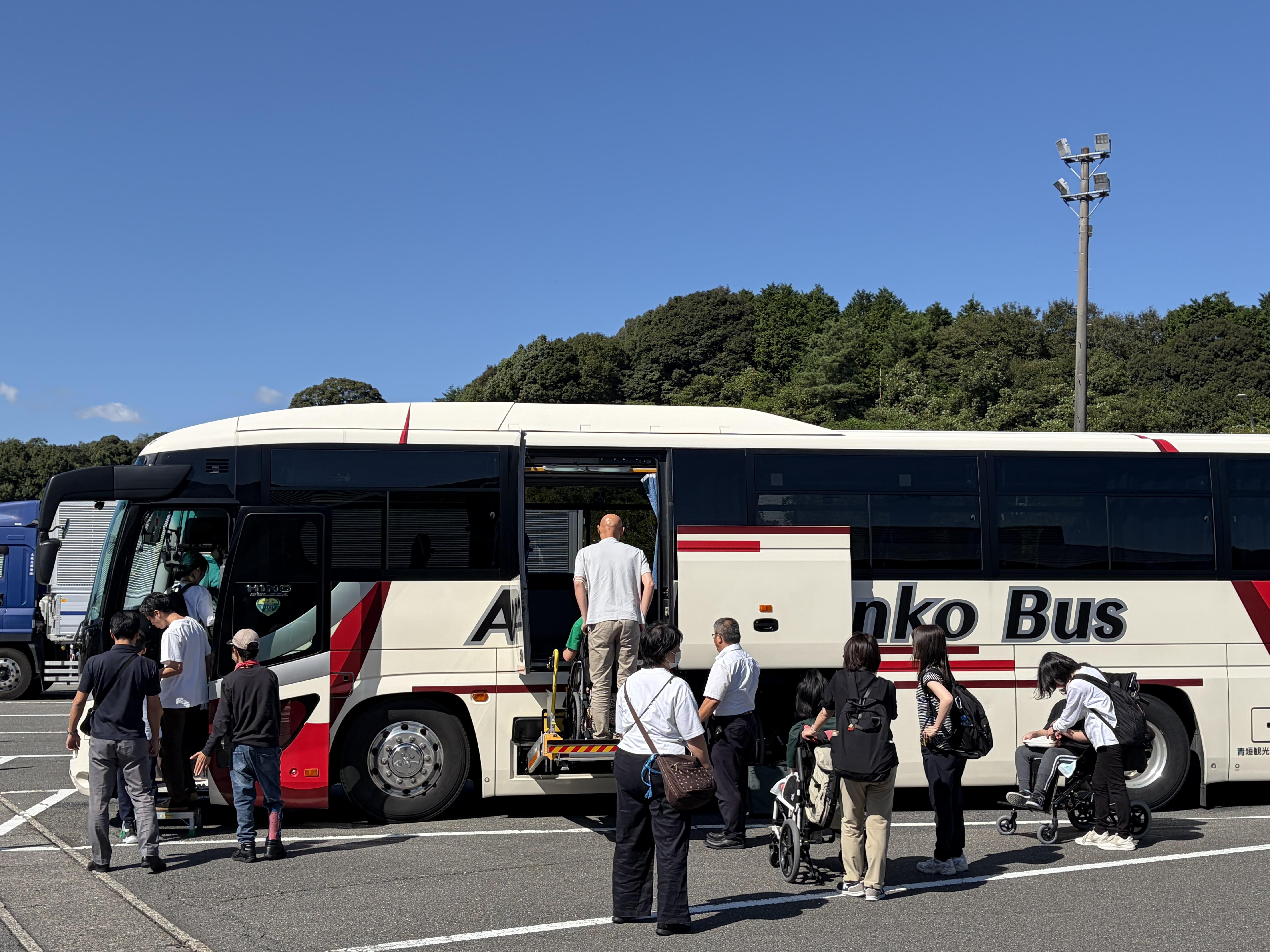 3日間をともに過ごしたリフト付きの大型観光バスとも、もうすぐお別れ。