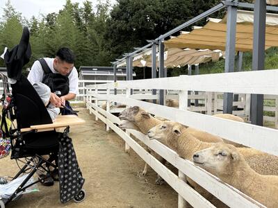 まずは、羊のエサやり体験❗️ちょっとドキドキで体験スタート‼️たくさんの羊たちがどんどんどんどん押し寄せてきましたが、みんな上手できました😀