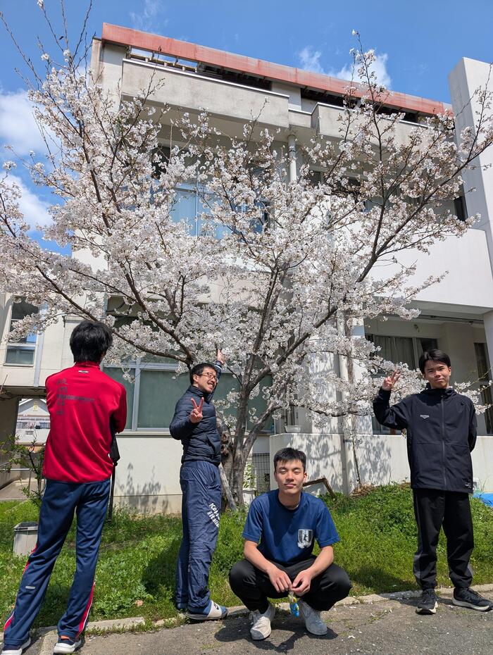 ふと見上げたら、 今年もちゃんと咲いてる せっかくやし...ということで、 陸上部に声かけて、 ちょっとだけお花見してもらいました。笑 いつもの中庭も、 今日は少しだけ特別な景色 こういう時間も、ええんちゃう