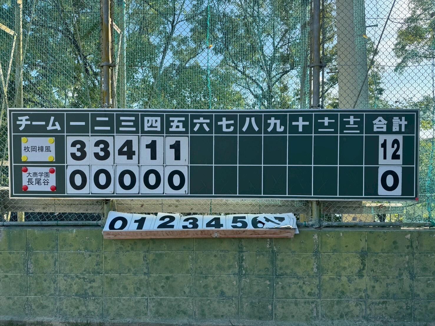 昨日の試合、大商学園長尾谷高校に12対0で勝利!