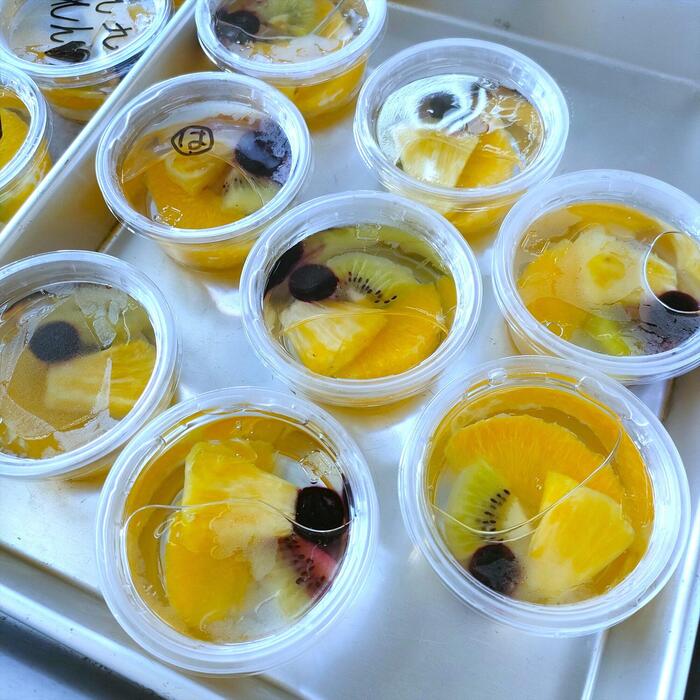 農と自然系列 3年生 この日の実習室の気温は35℃!まだまだ暑いですねえ。まだまだ夏ということで、涼しげなフルーツゼリーを作りました。生フルーツの本格的なカットから練習しました。ネーブルオレンジキウイフルーツパイナップル など、、、苦労しながらも、上手にカットできましたね。透明感あふれるきれいなゼリーの中にフルーツがいっぱい。翌日の畑の実習の後で試食でーす。#ゼリー#フルーツゼリー#フルーツカット...