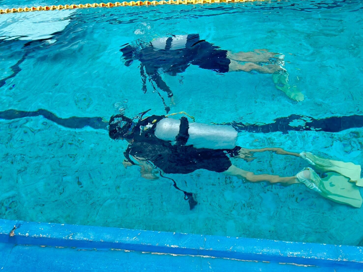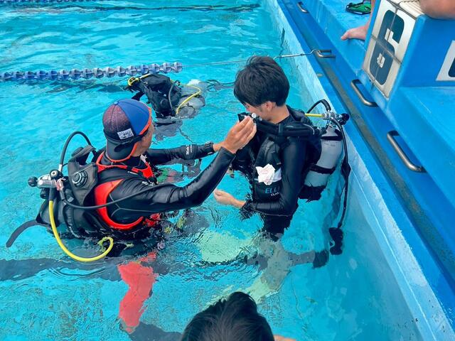 東大阪市のダイビングショップMAKO DIVEさんにご協力いただき、本校のプールにてスキューバダイビングの体験授業を実施しました