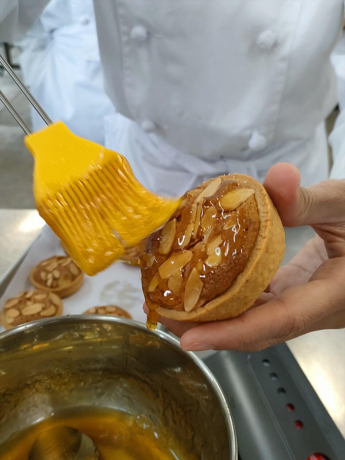 2年生「総合実習Ⅰ」の今年度ラスト実習は、アマンディーヌを焼き上げました!アマンディーヌとは、ミニタルト風のフランス伝統菓子です。サブラージュ法で、タルト台の生地をつくりアーモンドとバターのクリームを詰めて焼き上げました。樟風オリジナルは、中にブルーベリーの実を入れて甘酸っぱい風味に仕上げていますよ。最後に、アプリコットのナパージュを塗って仕上げです。美味しそうでしょう?おいしいんです。#アマンディーヌ#フランス菓子#スランス伝統菓子#アプリコットナパージュ#ミニタルト#クレームダマンド#大阪府立枚岡樟風高等学校#枚岡樟風高等学校#枚岡樟風高校#総合学科#農と自然系列#食品実習#製菓実習##