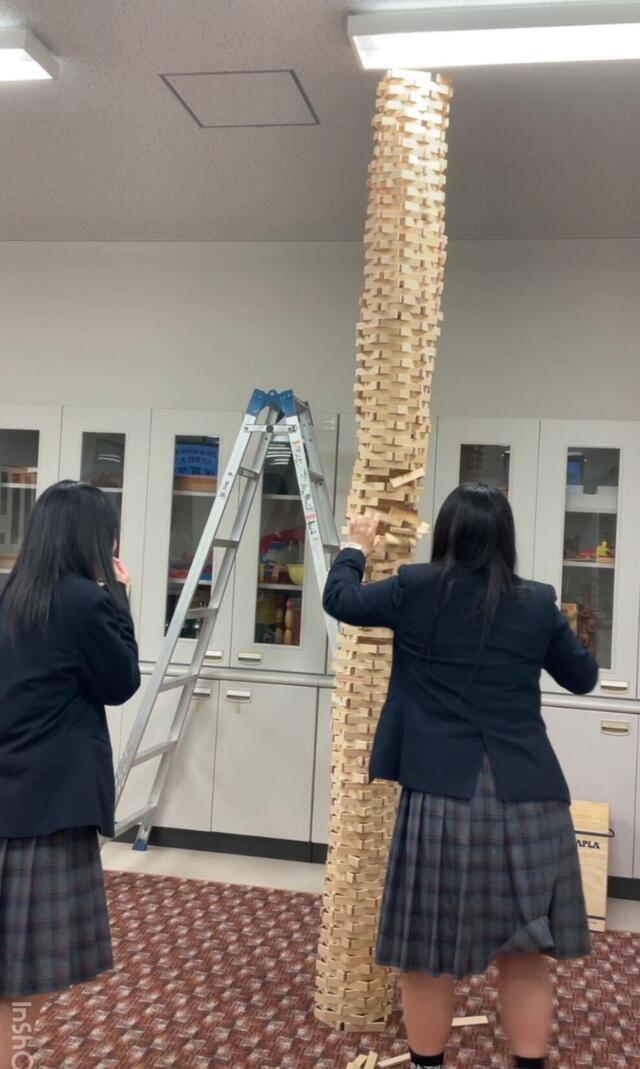 「子どもの気持ち」になって積み木遊びを体験しました。