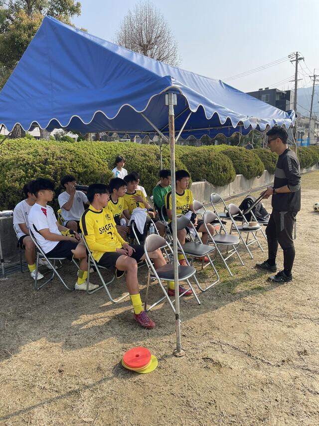 ハーフタイムにプレスのかけ方を再確認。 後半はしっかり修正することができ、 相手コートに押し込む展開に。