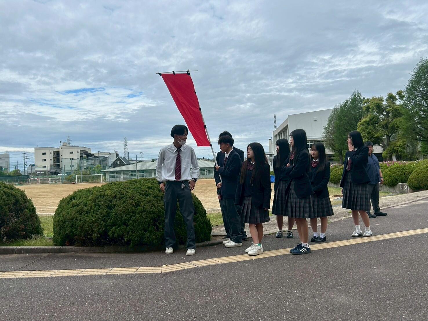 生徒会執行部 あいさつ運動 with 応援団