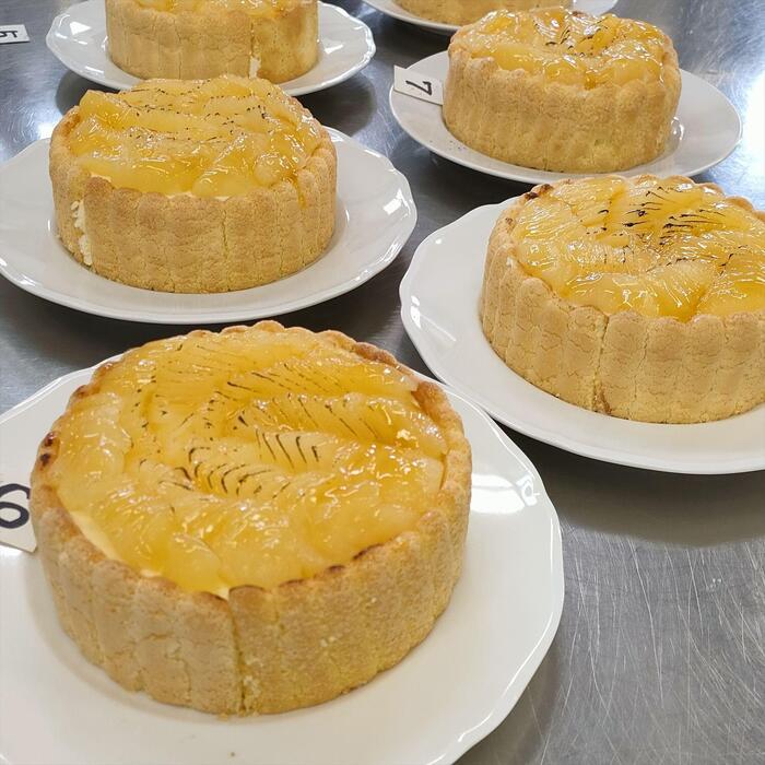 農と自然系列3年生 製菓実習です!「シャルロット・ポワール」2週がかりの大作です。サクッと焼き上げたビスキュイの枠。バニラビーンズをふんだんに使って焚き上げたデザートソース。ふんわりムースを流し込み、洋酒を効かせた洋梨のコンポートをスライスして飾ります。ホールで仕上げるとテンション上がりますねえ!最後は、みんなでお皿に切り分けて「いただきまーす!」食べきれないって!!!#シャルロットポワール#洋梨...