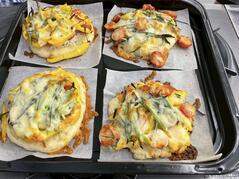 3年選択科目「生活文化」では、年間を通して、調理を伴う実習を行う超実践型の授業です。 今回は、自分のものを自分で作ることにチャレンジしました。献立は、牛乳を加えたほんのり甘い生地の上に、しらす、細ねぎ、プチトマト、細切りにしたパプリカをのせ、オーブンで焼き上げました。試食の際には、温かい紅茶を入れて、オーブンの熱で温まった調理実習室で、美味しくいただきました。