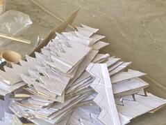 また鱗の表現には特にこだわりました。具体的には、独立した鱗のパーツをダンボールでおよそ230個作り、それらを組み合わせることで滑らかなカーブを造形しました。着色では『マスコットはペンキ一色で塗る』という固定観念を取り払い、絵の具を使用してグラデーションをかけました。つまり、鱗の一つひとつに筆で細かい模様をつけていき、それらをタッカー等の工具で蛇行させながら接合していったのです。
