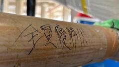 加えて、それ以外にも工夫は沢山あります。神龍を支える竹の支柱は大部分が露出していたので、ペンキで黒く塗ることで目立たせないようにしました。体育祭が終わった後、辺りが暗くなっても神龍が映えるように、LEDで目を光らせるギミックを持たせました。