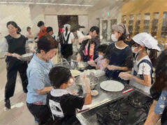 その後、ローズWAMに移動して、「いばらき自炊塾」のスタッフとして活動しました。新米で作ったおにぎりや、新鮮な野菜をふんだんに使った具だくさんのお味噌汁(茨木市産の龍王味噌、伏見屋さんのお豆腐、油揚げをたくさん使いました!)などを、参加した子どもたちや保護者の皆さんに召し上がっていただきました。ひと汗かいた後の食事は格別でした。とても充実した時間になりました。