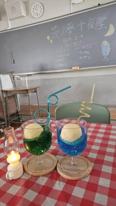 2年4組茨ノ夢十夜堂です!レトロなカフェで、文化祭での特別な時間を過ごしませんか?昔懐かしい空間で、おいしいドリンク&スイーツをご用意してお待ちしています。写真映えもばっちりです!ぜひタイムスリップ気分を味わってみてください!