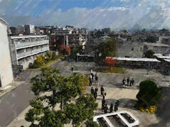 教室での説明のあと、ミニ校内案内ツアーに出掛けました。