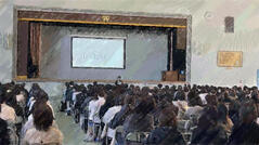 保護者の皆様は、体育館で、府立高校の受験システムの説明、生徒代表からのメッセージ、77期卒業生からのメッセージをお伝えし、充実した内容になりました。