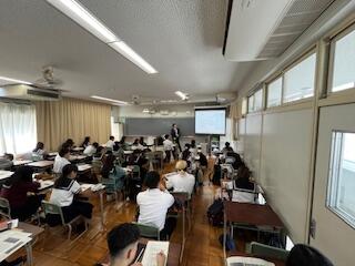 校長室に入ってこられ、上記のタイトルの下に書かれた講義内容のシラバスをご覧になった先生のお1人は、「自分の講義をそこそこにしてほかの方の講義をお聞きしたい」と笑顔でお伝えくださいました。90分のご講義の中身を理解することが叶わなかったり、その深遠さに立ちすくむような場面もあったかと思いますが、研究、あるいはまさにここでしか聞けないその道のお話を聞くことでそれぞれの進路の入り口に立てたと実感した人もいることだと思います。―温・冷水のシャワーの仕組み、1995年、2011年地震の揺れ方と建物の構造や歴史との関わり。そしてその認識の共有芥川龍之介の罪悪感、シノビ―のマネジメント、六道輪廻、各七日の意味合い、何もないところから突然水が出る、「質問は?」の問いかけに応じたありったけの力を込めた問い。「来てよかった、得られるものがあった」と思ってもらえる未来を見据えた取り組み、マスコミやSNSとは違う視座からの今の政治や社会に対しての描写。ほんの数分だけお邪魔した自分にはとても綴れないさまざまな驚きや学びが数々あり、それがこれからの生徒一人ひとりのこれからの広がりや深みだけではなく世の中がより味わい深くなるための第一歩として今日があることにより深い感謝の念を抱いております。講師の方と校長室でお話しする中で2011年が事実というより、史実としてとらえられているということの意味を考える機会となったとおっしゃっていたことがひときわ心に残りました。時が流れ、変わらず伝えていかなければならないことと時代の流れに会った適切なものを探し、共有していかなかればならないということは永遠のテーマであることを改めて実感しました。