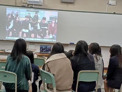 10月31日、4時間目の韓国朝鮮語の授業で、韓国にあるセロム高校と本校3年生がオンラインで交流を行いました。本校生は大阪弁、本校の学校行事などについて、韓国語でプレゼンをし、セロム生は韓国の給食、学校のデジタル化について日本語でプレゼンをしました。両校の生徒とも、お互いの文化を知ることができ、また学習してる言語でコミュニケーションがとれとても楽しそうにしていました!