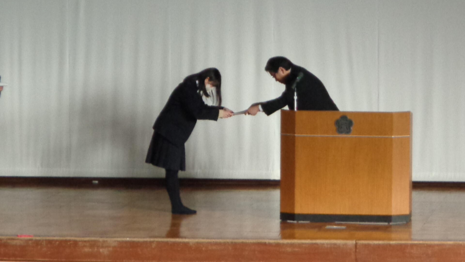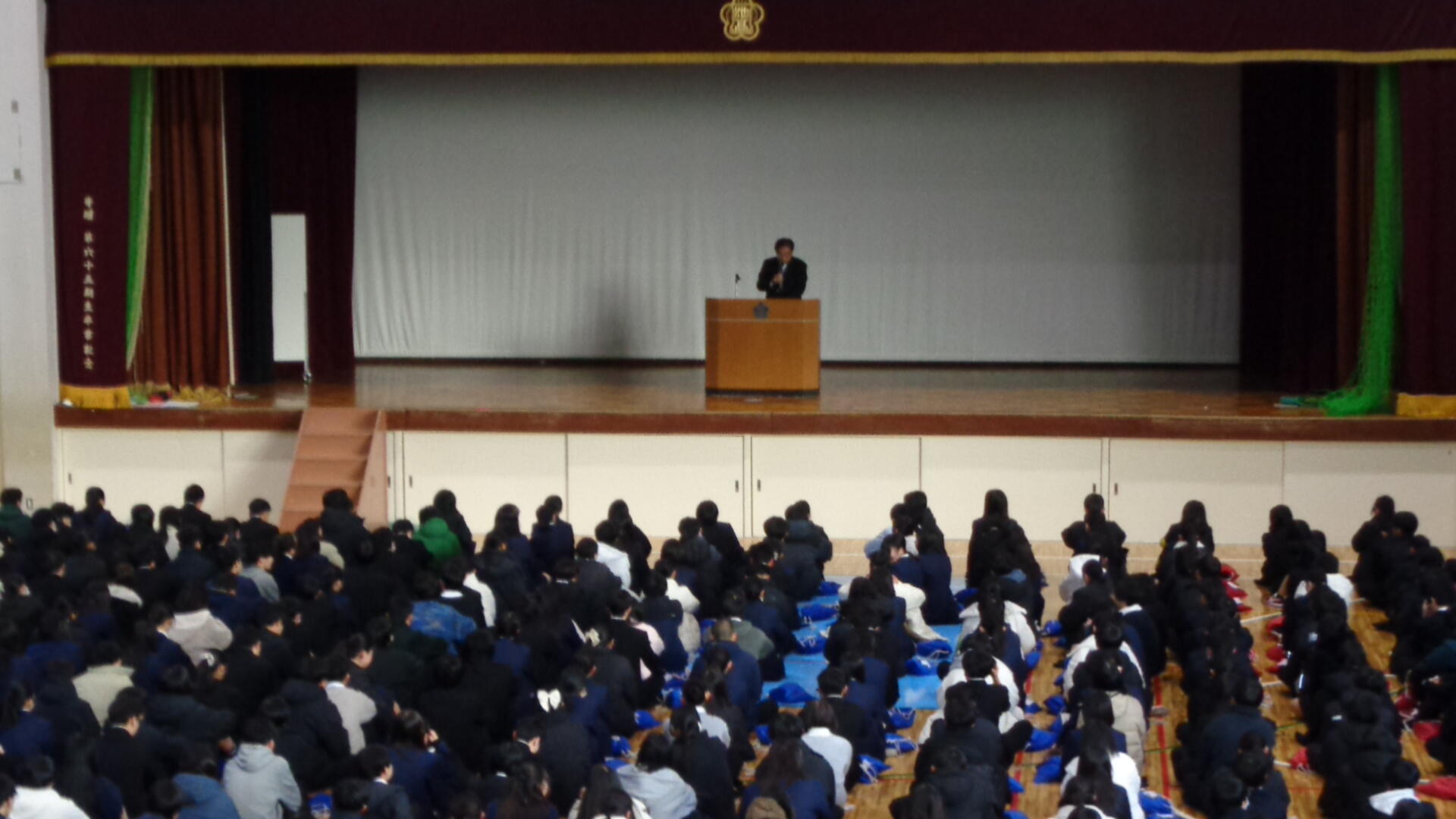 校長からの話では、もうすぐ大学入試が本格化する時期になりますので、自分自身の高校生時代と大学生時代を振り返って、挑戦することの大切さに関する話題がありました。緊張しないで受験することは難しいかもしれませんが、見方を変えれば緊張しているということは、それだけ試験に対して真剣に向き合ったからこその証と捉えられます。特に3年生にはこれまで自分たちが頑張ってきた成果が出るようにベストを尽くしてもらえたらと思います。