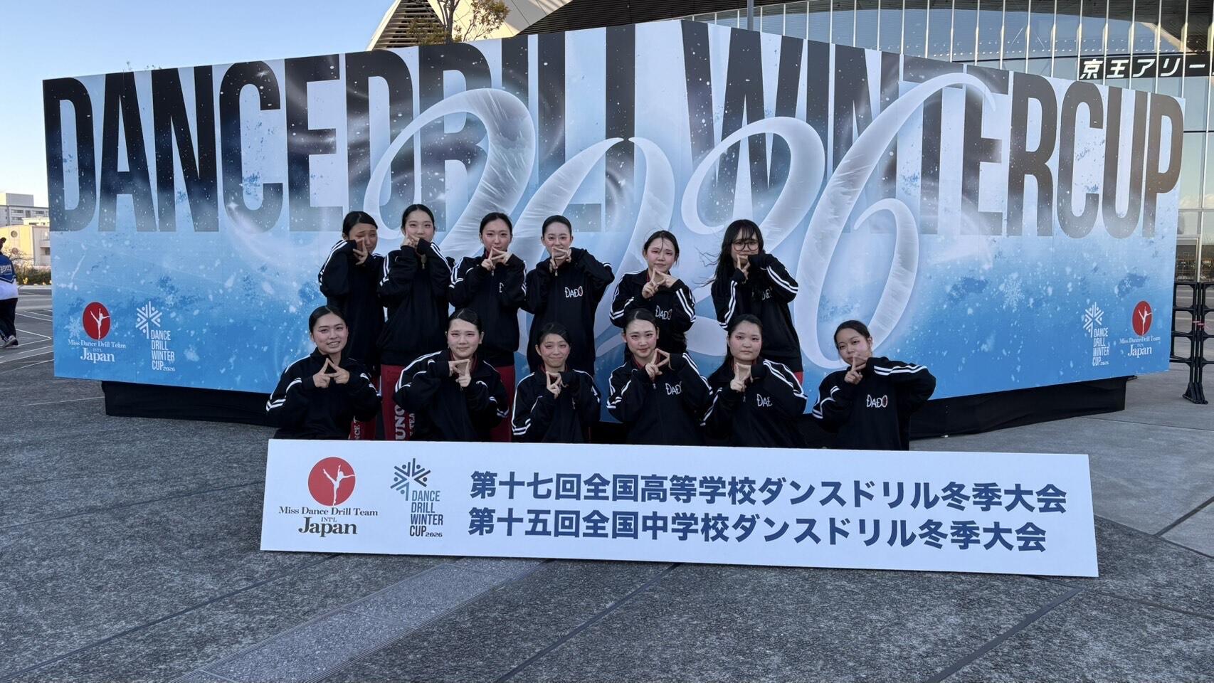 1月10日〜11日に京王アリーナTOKYOで開催された、第17回全国高等学校ダンスドリル冬季大会に、HIPHOP女子Medium 部門で出場しました。惜しくも入賞は逃しましたが、全国大会という大舞台で自分たちのパフォーマンスを出し切ることができました。また、普段あまり見ることのないバトントワリングやチアの演技も見ることができて刺激になりました。今回得られた経験を活かして、これからも頑張ります。