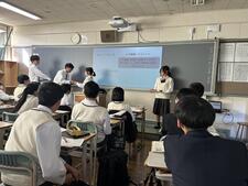 写真は、2年生の保健の発表の様子です。班ごとにテーマに沿って、スライドと配付プリントを作成して臨んでいます。この班のテーマは、健康的な職業生活。様々なハラスメントについての紹介をコント?劇?を交えて紹介し、笑いも起きていました。余暇やメンタルヘルスなどについても述べられており、充実した発表でした。"オカハラ"なるものがあるそうですが、みなさんわかりますか?