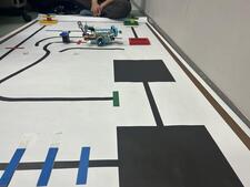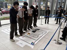 平日からレゴブロックを運ばせるという実技課題の対策に励んでいました。様子を見に行かせてもらった時は、まさに職人!?、プログラムを書き換えながら、マシンが規定のコースを走れるよう微調整していました。工夫を凝らしたこのマシンは、当日、大学生からも高い評価をしていただいたそうです!!