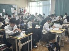 1年生は、校内で模試を実施しました。国数英の3教科。特に数学100分などは初めての経験だったのではないでしょうか。最後まで集中力を持続させながら取り組めたでしょうか。共通テストや、二次試験を見据え、学力はもちろん、集中力を持続させる練習もしっかりと進めてほしいと思います。3教科終了後には、自己採点・解き直しを行いました。こちらもあたりまえに取り組めるようになっていってくださいね!!