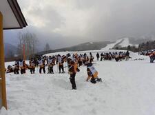 開校式を経て、ゲレンデへ!1枚めのバックはトマムタワー(宿泊ホテル)です!!