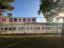 今日は、古くなった"祝 近畿大会出場"の横断幕と、先日からお伝えしていた公立校大会で近畿大会出場を決めた男子硬式テニス部と全国大会に出場するダンス部の横断幕が届いたので、その設置を行いました。風に煽られたので100点とはいきませんでしたが...及第点はいただけますでしょうか。単年度でこれほど多くの部が実績を残したことはないのではいかと思います。これらに加えて、今年度は学生科学賞での入賞などもありました。それぞれが自分色を見つけて活躍しています!