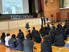 前半は、今年度ミラクルチャレンジに参加した生徒らからの報告会(ミラクルチャレンジ:主に理系人材の育成をめざした生野独自のプログラム)。