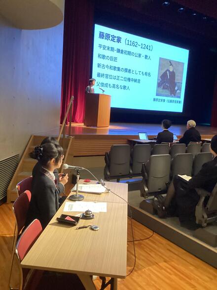 Hさんは、「新古今和歌集で見る藤原定家の恋歌の特徴と表現」という藤原定家の歌には、悲恋の歌が大変多く、それらの歌からどのようなことが考えられるのか、発表を聴いていると、かなり多くの文献や資料を読み解いていることは、想像に難くないものでした。