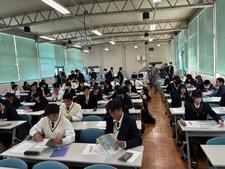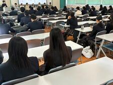 その後は、78期生卒業生(進路サポーター)を招いての、進路講演。実践例や失敗談、おススメの学習法や大学選び、スマホとの付き合い方、最後は後輩へのメッセージをいただきました。やはり直接知る(見たことのある)先輩方からの話はイメージも湧きやすく、とても参考になったようです。さらに詳細や質問のある人向けに、終礼後にも続きの場を設定しました。こちらには約50名の参加があり、自身の進路に向けて熱心にメモをとっていました。