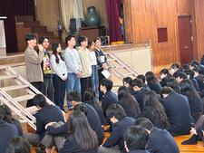 さらにさらに、こちらは防災意識を高める交流大会の報告(熊本豪雨災害に学ぶ)と銘打ったセクション。以前から親交のある八代白百合学園高校との交流を通して学んだことを全校生徒の前で発表してくれました。災害を自分事として捉えること、備えておくことの意味...どのパートも熱く、思いのあふれるメッセージが印象的でした。