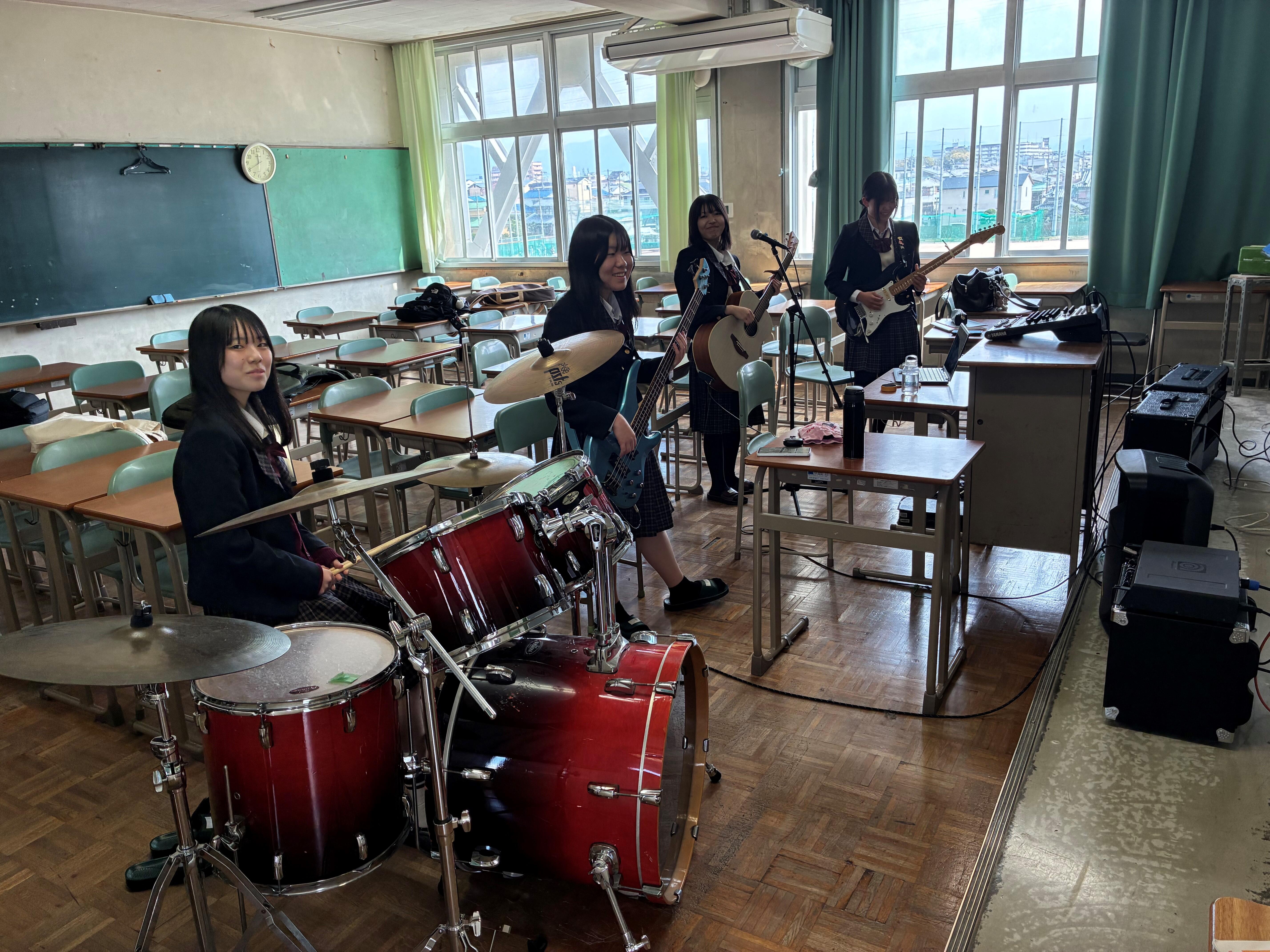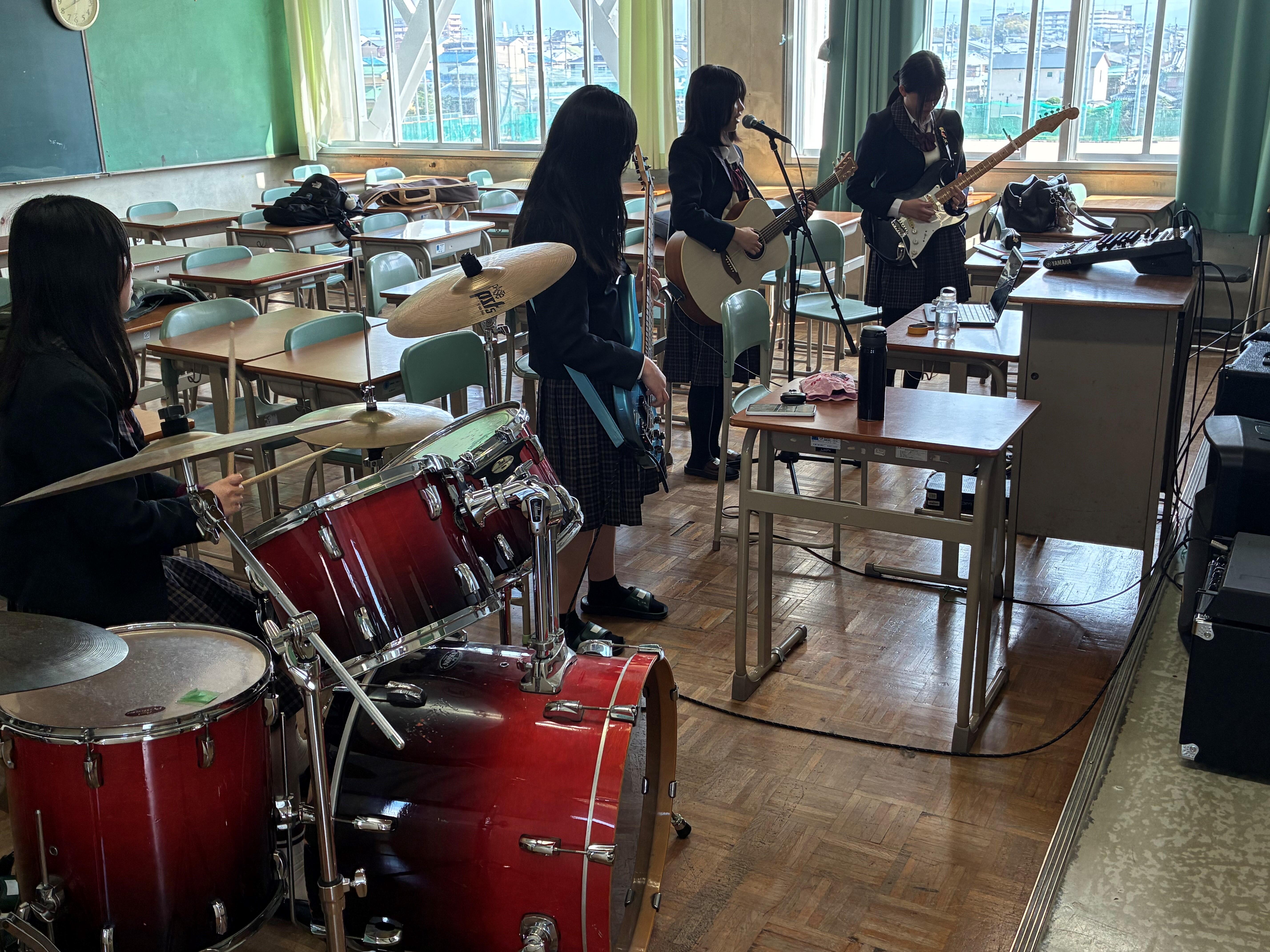 在校生の様子、軽音楽部が4月13日、14日、17日の新歓LIVEに向け練習を行っていました。シャウト系ではなく、非常にしっとりとした楽曲で非常に心地よい!?感じでした!
