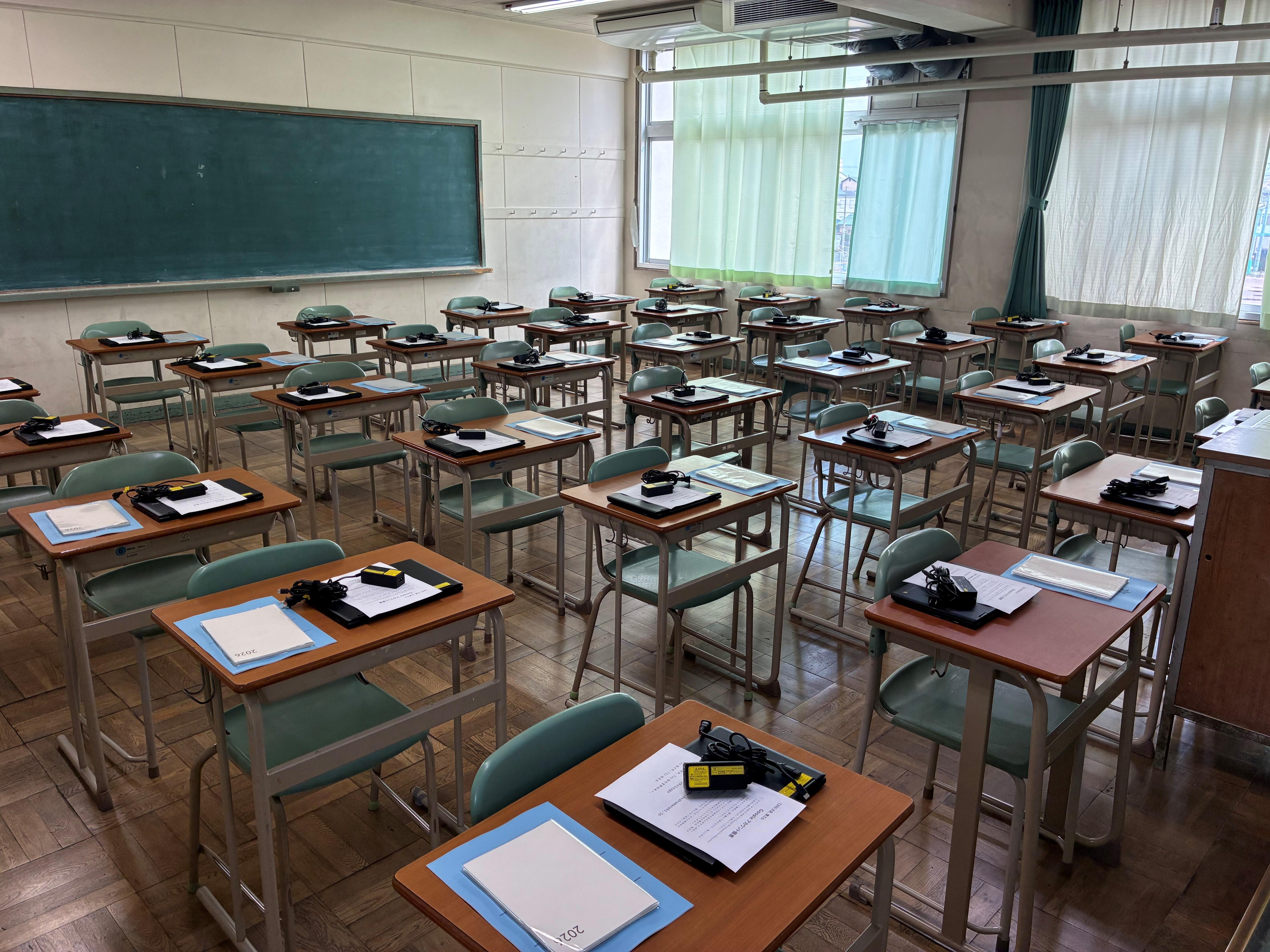 担任の先生方が座席表を貼るところから始まり、1人一台端末のChromebookやスケジュール帳を教室に搬入したりしました。360台のChromebookですから、教員だけでは運べません。ということで、吹奏楽部、軽音楽部、卓球部の生徒らの力を借りました。とても助かりました!!ありがとう!