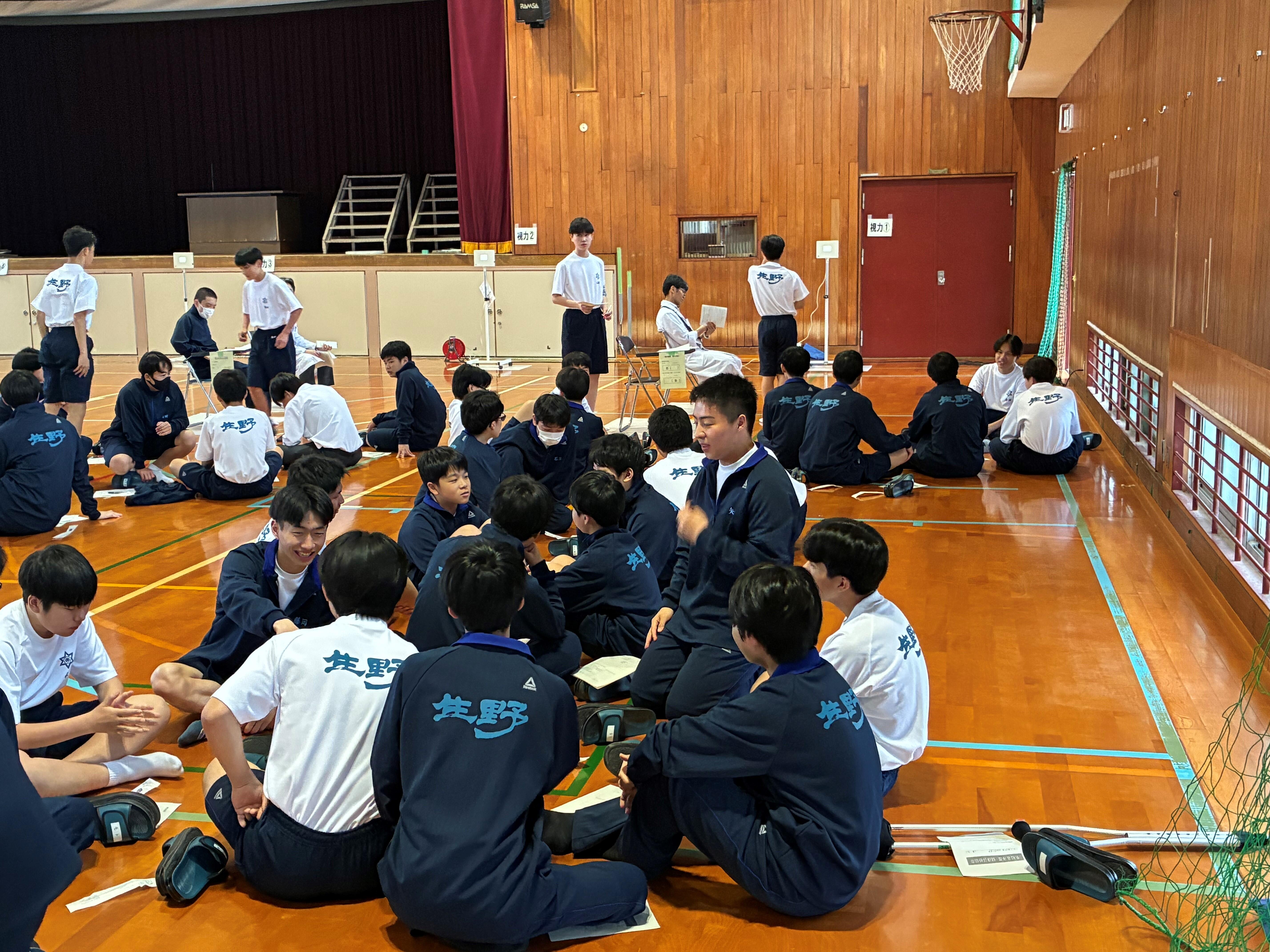 午後からは、2・3年生はLHR、1年生は健康診断を実施。クラス内の班ごとに各検査を回っています。待ち時間は、「静かにするように」と注意を受けながらも、雑談等している姿も見られました。徐々に打ち解けているようです!