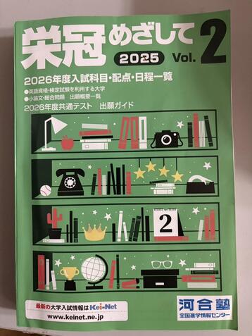 この本には、全国の国立・公立・私立大学の入試科目がすべて載っています。電話帳ぐらいの分厚さなのですが、生徒用はサイズが小さめです。老眼世代には調べるのはつらいですが、生徒たちはこの字が読めて羨ましいです。この機会に大学を見に行く人もいます。オープンキャンパスでなく、普段の様子を見るほうが実情がわかるかもしれません。ネットの情報をうのみにするのではなく、現地に足を運んで、しっかり自分の将来と向き合いましょう。