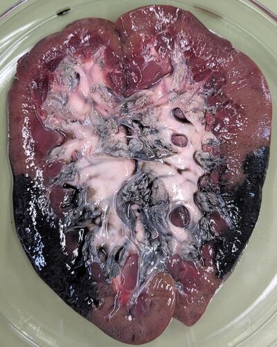皮質をさらに見てみると黒い粒々(糸球体)があるのがわかります。