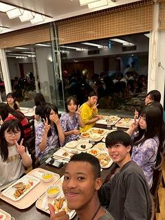 夕食はビュッフェスタイルで、混雑を避けるため2クラスごとに10分の時間差をつけて料理を取りに行き、修学旅行委員が挨拶をして始めます。
