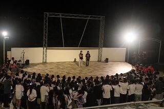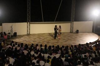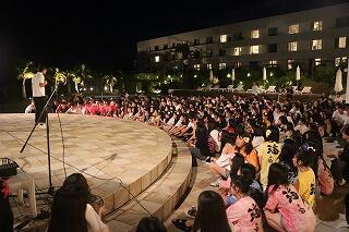 夕食後、20時からホテルのプールサイドステージで学年レクvol.1が始まりました。二夜連続の初日はおもにダンスとゲーム、レク委員のメンバーが皆に楽しんでもらいたいと、これまでたくさん準備を重ねてきました。