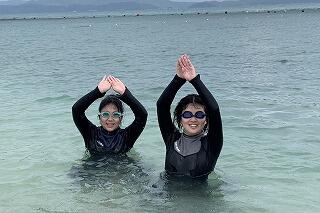 10月、沖縄の海はまだまだ温かいです。空もとても広く、開放的で伸び伸びしますね(^^)/