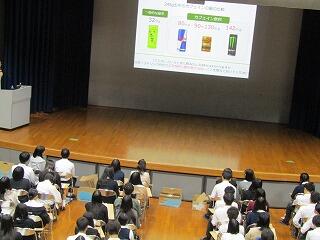 2年の保健講話として本校の薬剤師の先生から「薬物依存」についてご講演していただきました。