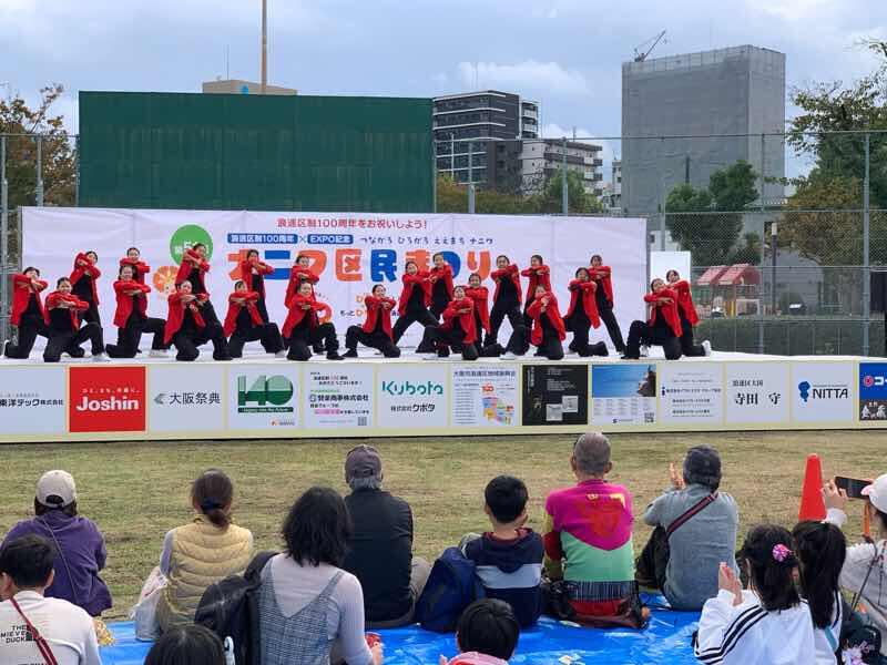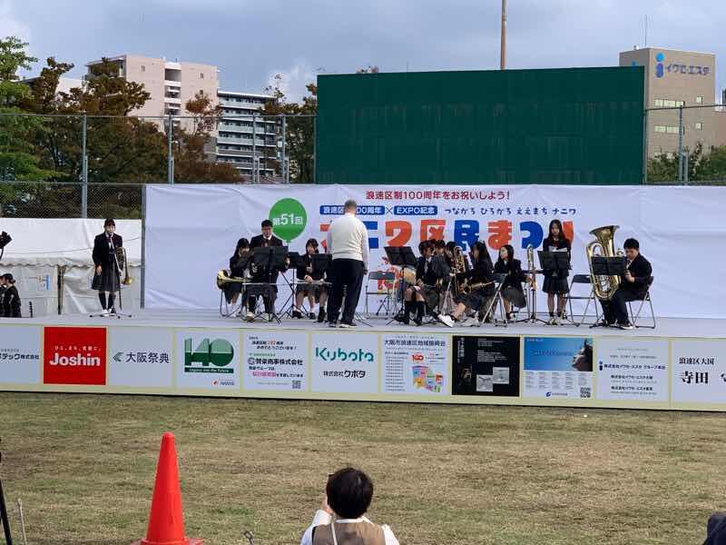 2日の日曜日にダンス部と吹奏楽部が浪速公園にて開催された「ナニワ区民まつり」に参加させていただきました。