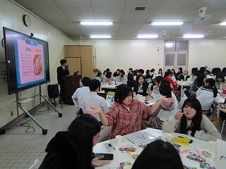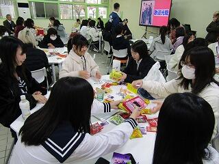 テーブルいっぱいにお菓子が並び、それを食べながら自己紹介やインスタの交換、好きなアニメの話など、どのテーブルも大変盛り上がっていました。