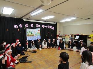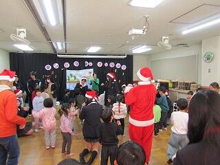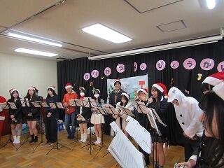 高校生の演奏のあと、園児たちからも歌とダンスでクリスマスの曲を披露してもらい、高校生も一緒になって歌って踊りました。