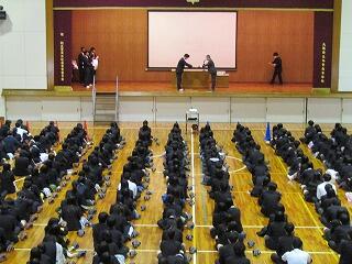 式に先立って、1年生が参加した「税の作文」の表彰式を浪速区の税務署の方が来られて行いました。