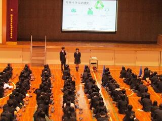 自治会からは、年明けから始める「ペットボトルキャップの回収」についてと、執行部役員の人数やクラス役員の追加もあるので、生徒議会を開き、みなさんに考えてほしいという連絡をされました。