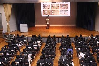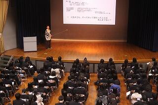 ご自身が今高生だった時にどんな進路を考えていたのか、そこから今に至るまでどういう勉強、仕事をされていたのか、など在校生へのエールを交えながらご講演していただきました。