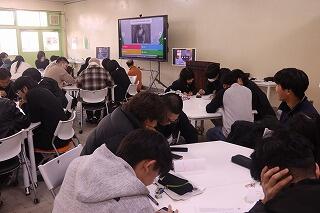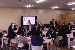 「カフート」というアプリを使ってゲームをしたり、発音記号から実際に声に出して発音してみたり、フィリッピンの方とオンラインをつなぎ、写真を見て英語で一つのストーリを説明したり、と初めから最後までオールイングリッシュの盛りだくさんの内容でしたが、本校生徒も楽しく一生懸命勉強できたことと思います。